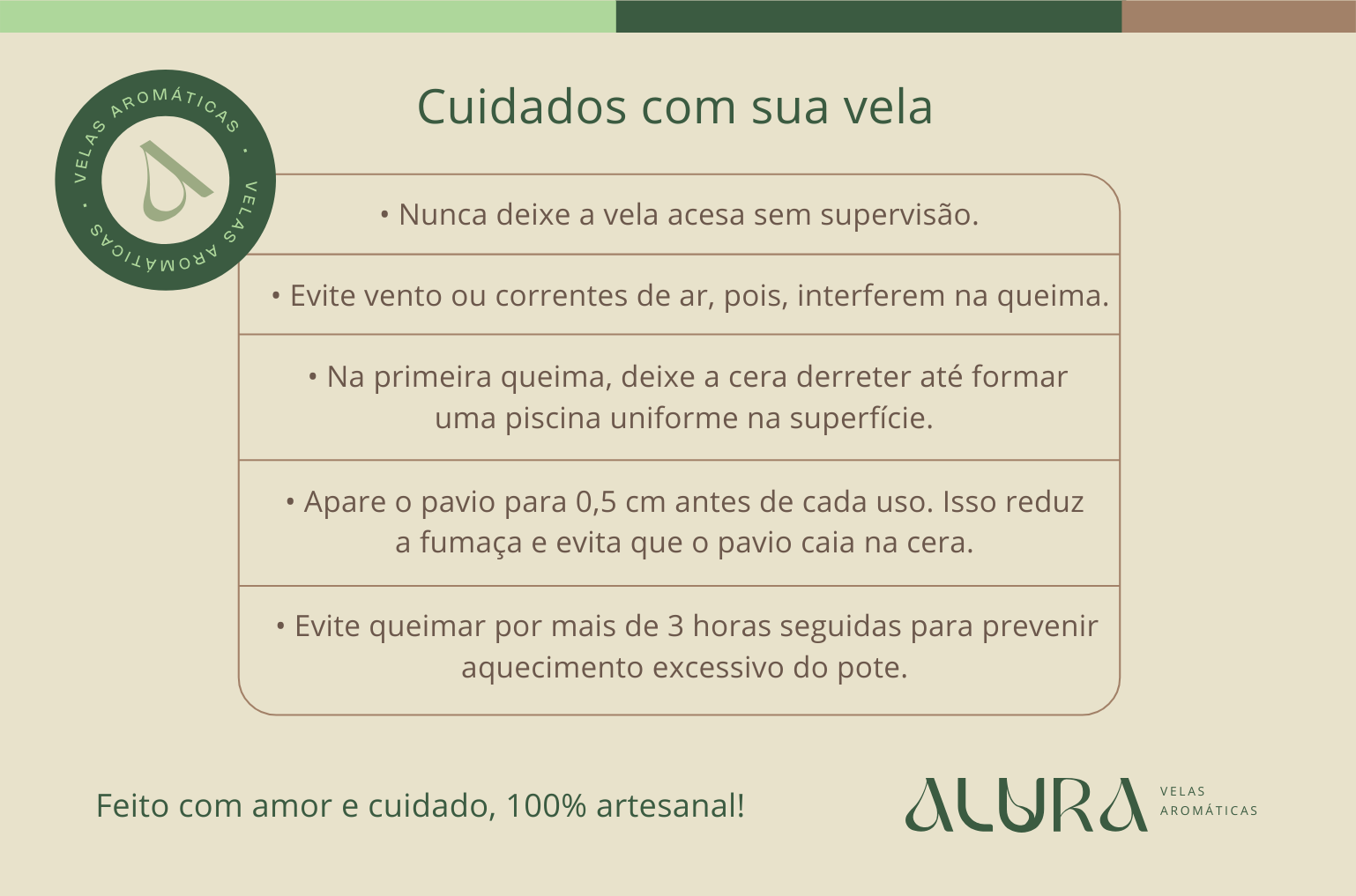 Cada vela é cuidadosamente embalada em uma caixa kraft com adesivo da Alura, perfeita para presentear ou transformar qualquer ambiente.